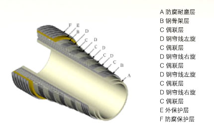 防腐耐磨層是構(gòu)成輸送流體的管壁,是高密聚乙烯(HDPE)尼龍和聚偏二氟乙烯(PVDF)添加劑等高分子材料擠塑聚合物。選用的材料要在化學(xué)理化性能上能抵抗擬輸送的流體的腐蝕磨擦作用,且不受其工作條件的影響。